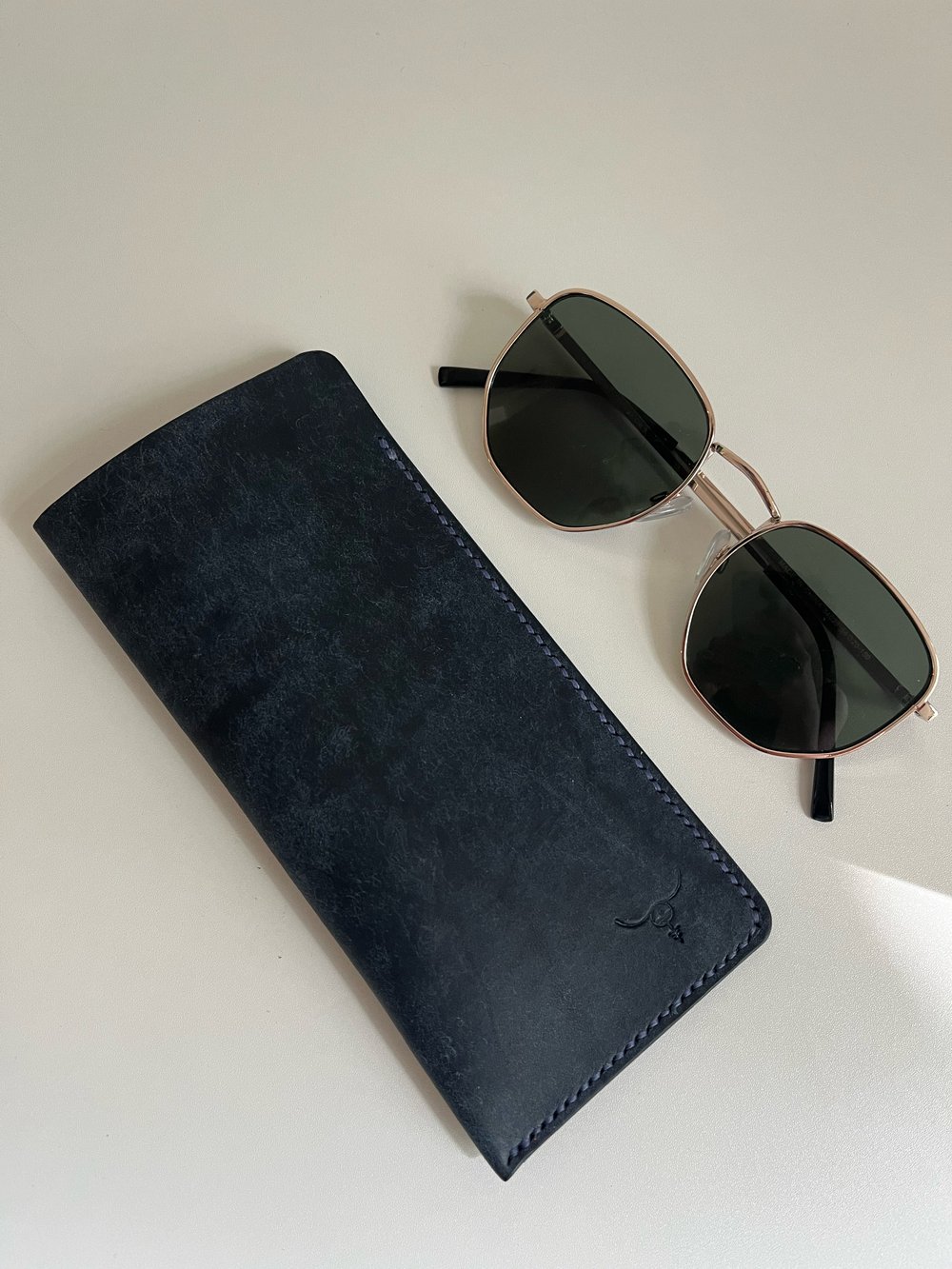 Simple Sunglasses Case Badalassi Carlo Pueblo Italian Vegetable Tanned leather in Navy